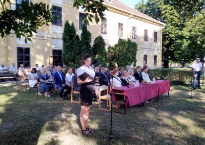 Igazgató úr gondolatai után Zelk Zoltán: Ez már az ősz című versét hallgathattuk meg Diós Anna 10. L osztályos tanuló előadásában. Bemutattuk az iskola új pedagógusait és munkatársait is: Varga Tibor Krisztián angol szakos tanárt, Deli Zoltán magyar nyelv és irodalom szakos tanárt, Krajcsovics Zsuzsanna lovász szakoktatót, Barna Tamás patkolókovács oktatót, Tar Balázs hegesztő oktatót, Szűcs Sándor mezőgazdasági gépjavító szakmai elméleti oktatót, valamint Jován Richárd belovagló oktatót. Kotroczó Mónika 11. L osztályos tanuló Szabadi Lívia: Intelem című versét szavalta el, majd Janovszki László általános igazgatóhelyettes bemutatta az új osztályfőnököket és osztályaikat. Arra kérte a tanulókat, hogy fogadják be az új diákokat, érjenek el közösen eredményeket. Kilenc osztályban 140 új tanuló kezdte meg a tanulmányait a Ménesbirtok iskolájában, a teljes létszám pedig 280 fő.
