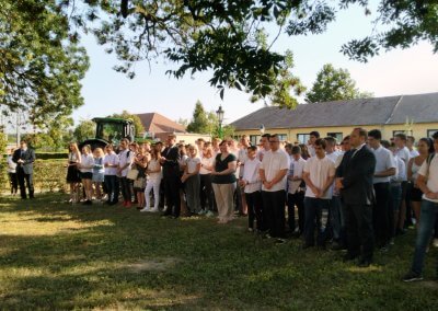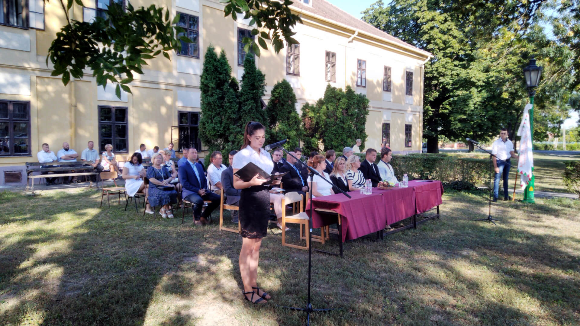 Közel háromszáz diákkal, öt különböző képzéssel és új névvel kezdhetjük meg a 2019/2020-as tanévet. A Mezőhegyesi Kozma Ferenc Szakgimnázium, Szakközépiskola és Kollégium tanévnyitó ünnepségét a Hangai postakocsi állomás és fogadó műemlék épülete előtt tartottuk, az eseményen Krébesz Cintia 12. A osztályos tanuló konferált. Az iskola zászlajának fogadása közben az Alapfokú Művészeti Iskola 7. osztályos diákja, Tar Zsombor trombitált. Megjelent vendégeink köszöntését követően Tarkó Gábor igazgató úr tartotta meg tanévnyitó beszédét.