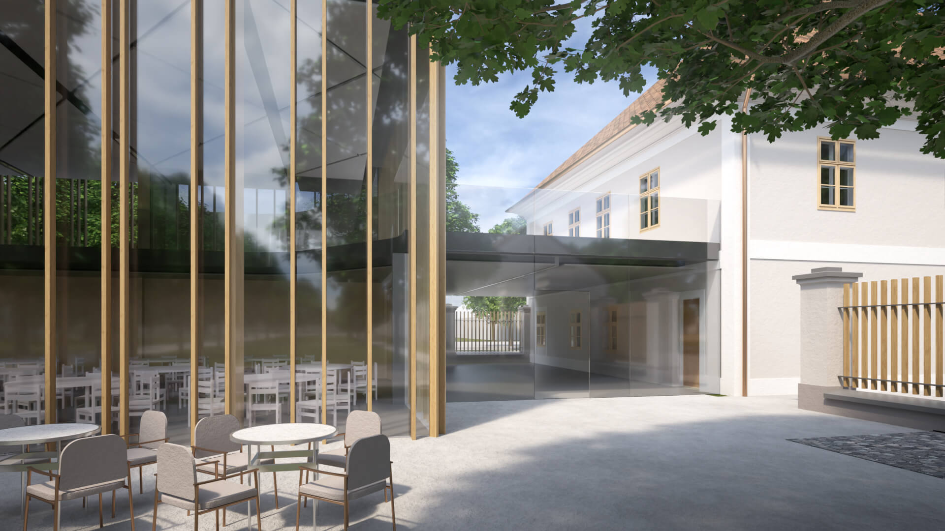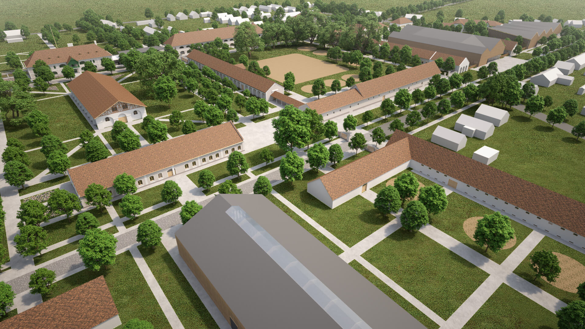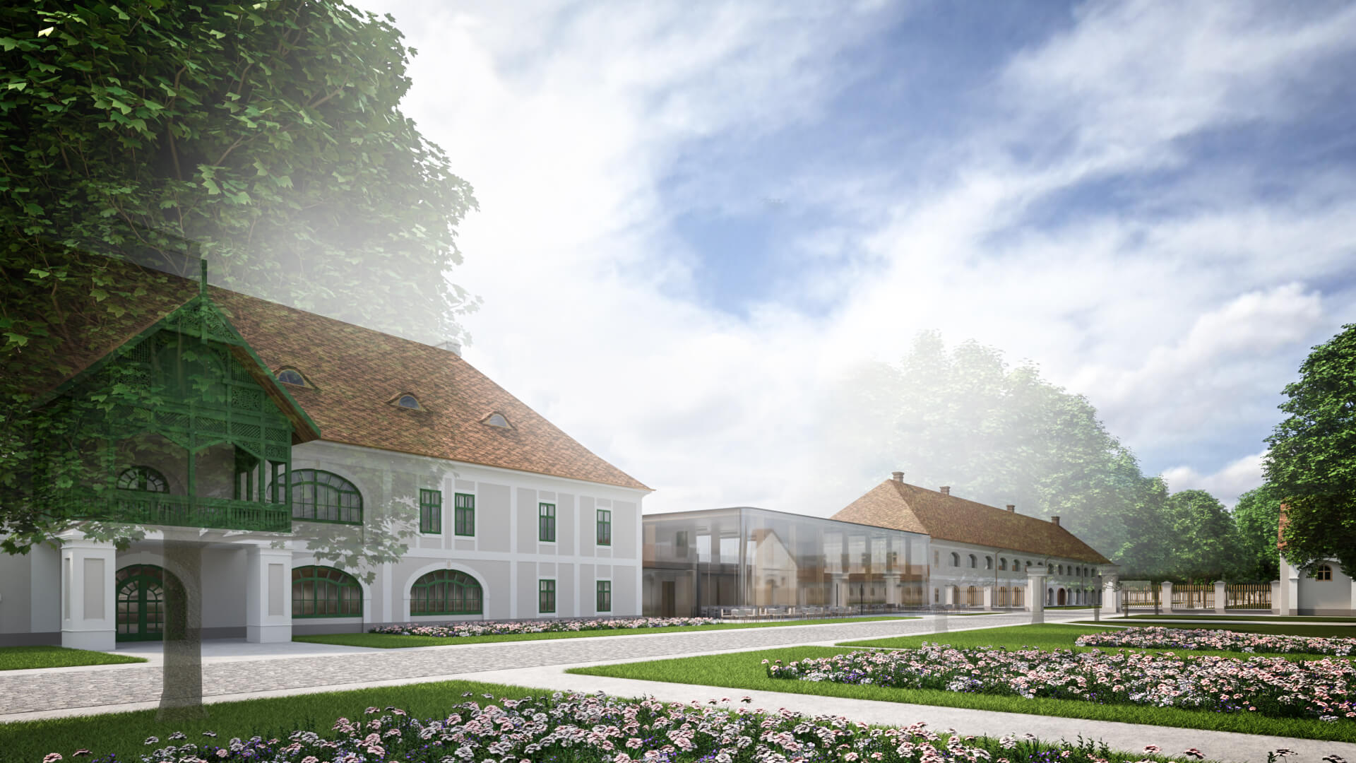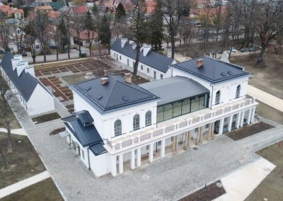 A Ménesbirtok központjának átfogó fejlesztési tervéről szóló cikksorozatunk második részének címében Féja Gézától idéztünk. A beruházások második ütemében a központi ménesudvar, régi nevén a Csekonics-udvar fog megújulni. Megújul a Versenyistálló, a Keleti lóistálló a kocsiszínnel, illetve visszakapja eredeti funkcióját a Fedeles lovarda mögötti Központi istálló. Katona András, a DAW Építész Stúdió vezető építésze beszámolt róla, hogy a falkutatás során megtalálták a befalazott, eredeti öntöttvas oszlopokat. Céljuk az eredeti állapot és funkció helyreállítása. A Keleti istálló egyik kocsiszínjében és az istálló előterében kávézó is működik majd, ahonnan vendégeink közelről szemlélhetik a lovakkal dolgozó szakemberek, vagy éppen a Ménesbirtoknál tanuló diákok munkáját. Lázár János kormánybiztos úr valamennyi folyamatban és tervezési fázisban lévő projektünk kapcsán alapvető igényként fogalmazta meg, hogy a mintagazdaság üzemeit, telephelyeit, létesítményeit bejárhatóvá kell tenni – egyrészt a szakmai közönség, másrészt a turisták számára. A Ménesparancsnokság is ennek megfelelően illeszkedik a koncepcióba. A jövőben egy négycsillagos szállodakomplexum és rendezvényközpont részeként fog működni. A parancsnoki épületben egy 64 fős rendezvénytermen kívül exkluzív szálláshelyek létesülnek. Teljesen megújul a Hotel Nonius is, így összesen 34 szoba áll majd az ide látogatók rendelkezésére. A két épületet egy üvegfalú, új rendezvényközpont kapcsolja össze, amely alkalmas lesz nagyobb rendezvények, például szakmai konferenciák, esküvők befogadására. A tervek első változata szerint a szállodakomplexum részeként a rendezvényközpont pincéjében rekreációs központ létesül edzőteremmel, szaunával, medencékkel. Katona András és munkatársai a nagykovácsi Teleki-Tisza kastély két bástyája közötti emeleti részen már terveztek hasonló rendezvényteret. Az üvegből készült homlokzat Mezőhegyesen visszatükrözi a műemlék épületek és a fák képét; a könnyed, elegáns, mondhatni légies szerkezet a megfelelő arányokkal illeszkedik a Ménesudvar épített örökségéhez.