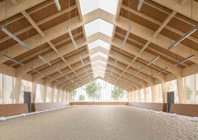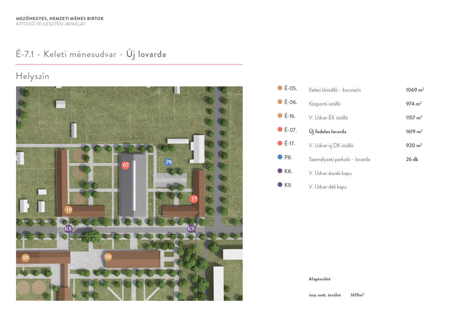 Pap István Tibor vezérigazgató úr véleménye szerint a Mezőhegyesen egyre gyakrabban megrendezett országos és nemzetközi lovasversenyek, az általános iskolások részére szervezett gyógylovaglás, a Ménes szakembereinek, valamint a lovas képzések igényeit csak egy új fedett lovarda megépítésével lehet kielégíteni. A koncepcióban szereplő új épületek egyike egy modern, új fedeles lovarda a Keleti ménesudvarban. A tervezők itt is szem előtt tartották a ménesintézet katonai hagyományait, igyekeztek helyreállítani a térszerkezet szimmetriáját. Utóbbinak legnagyobb gátja a Molnár-C. Pál lakótelep. A tervek értelmében a Keleti ménesudvar előtt megszűnne a gépjárműforgalom, két „új Hild-kapu” zárná le.