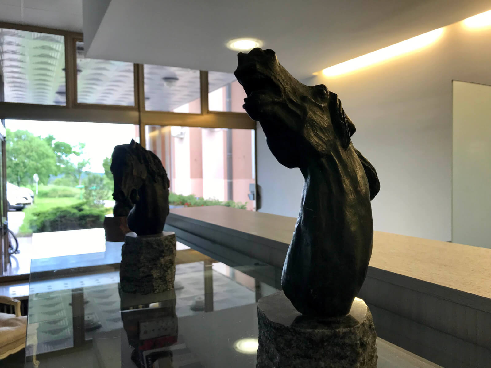 Megérkezésünkkor gondozott környezet fogadott bennünket, fehér karámkerítés szegélyezte az utakat. A szálloda közelségében néhány szobor, festmény és a gazdag árukínálattal működő ajándékbolt kivételével még semmi nem utalt rá, hogy egy történelmi ménes területén vagyunk. 68 szoba mintegy 150 fő befogadására képes. A szálloda és általában a ménes épületei eklektikus összképet mutatnak. A műemlékek mellett a szocialista éra vasbeton épületei és a könnyűszerkezetes modern épületek is megtalálhatóak, sokszor éles kontrasztot alkotva. A műemlék lovardák, a kápolna és a régi fedeles lovarda függesztett, ácsolt fedélszéke mellett az interaktív kiállítótér ragadott meg leginkább. Utóbbi helyen a Los Angelesben megrendezett 1984. évi nyári olimpiai játékokon sikerrel szerepelt lipicai ló csontváza, híres festmények másolatai, a lótenyésztéshez kapcsolódó tárgyi emlékek mellett leginkább a lapostévék, érintőképernyők és projektorok uralják a kiállítóteret.