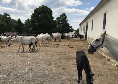 1580-ban I. Ferdinánd német-római császár, magyar és cseh király fia, II. Károly főherceg a bécsi spanyol lovasiskola számára kilenc spanyol mén és huszonnégy kanca tenyésztésbe állításával egy tenyésztő telepet alapított a császársághoz tartozó Trieszt kikötőváros közelében. A Karszt-fennsíkon fekvő Lipik, a mai szlovéniai Lipica impozáns lovakkal látta el a hercegi és a császári istállókat. 2019 májusának utolsó napjait a Ménesbirtok menedzsmentje a történelmi ménesintézet tanulmányozásával töltötte. Pap István Tibor vezérigazgatóval, Turbucz Péter beruházási és fejlesztési vezérigazgató-helyettessel és Janesz János állattenyésztési igazgatóval elsősorban a ménes köré felépített turizmust, az itteni turisztikai attrakciókat vizsgáltuk. Katona András vezető építész és a DAW Építész Stúdió csapata ennek az építészeti, infrastrukturális hátterét elemezte.