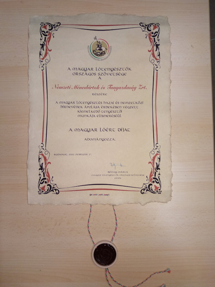 A Magyar Lótenyésztők Országos Szövetsége 2020. február 27-én tartotta éves rendes közgyűlését. A közgyűlés napirendi pontja volt a Magyar Lóért Díj átadása.