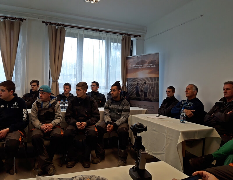 Fehér Róbert szervizmérnök és Kocsmárik János területi képviselő kollégánk ismertette a Trimble rendszerben rejlő lehetőségeket, rövid elméleti áttekintést adtak a precíziós gazdálkodás alapvető összefüggéseiről, nem csak az átadón részt vett személyeknek, hanem utána a diákok részére is. Interaktív beszélgetésben az érdeklődő kérdésekre szakember kollégáink készségesen válaszoltak.