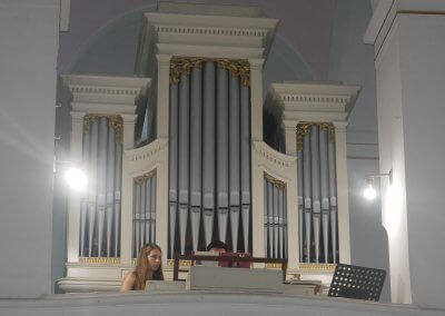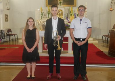 A fantasztikus koncert olyan elhivatott fiatal művészek tolmácsolásában hangzott el, mint Dóbisz Áron orgonaművész a Szegedi Király-Kőnig Péter Zeneiskola tanára. Áron sikeresen koncertezik itthon és külföldön egyaránt. Nemzetközi orgonaversenyeken Szegeden I., Rómában és Temesváron II. díjat nyert. Több darabban közreműködött Samodai Bence János trombitaművész, aki legutóbb egy országos trombitaversenyen ért el I. helyezést. Koncz Regina szoprán énekművész előadása felejthetetlen, valóban szakrális élmény volt a hallgatóság számára. A repertoárban többek kötött Bach, Albinoni és Mozart művei szerepeltek. A felújítást követően a hangszer legalább újabb 150 évre szolgálni fogja a híveket.