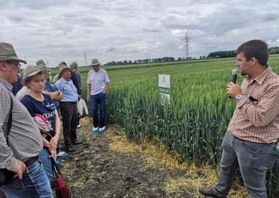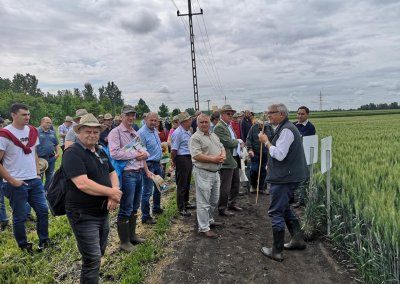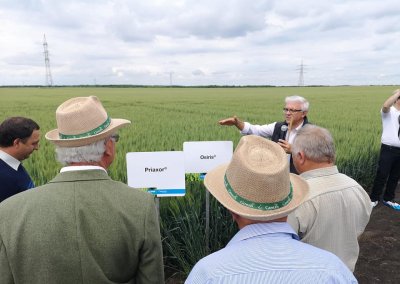 2019. május 29-én rekordszámú részvétellel, több mint kétszáz fővel rendezhettük meg az őszi búza fajtabemutatót. A rendezvényt a Mezőhegyesi József Attila Általános Iskola színházteremben nyitotta meg Isaszegi Norbert termelési vezérigazgató-helyettes úr, ezután Dr. Hc. Dr. Pepó Péter Egyetemi tanár (Debreceni Egyetem) „Interaktív hatások az őszi búza termesztésben” című előadását hallgathattuk meg. Ezután a 87-es táblán folytatódott a program. Tizennégy fajtatulajdonos ötvennégy fajtája került szemlére, emellett a BASF gyomirtási és kalászvédelmi technológiája és a HORSCH szemenkénti vetéstechnológiája (1,2 millió – 3 millió csíra/ha) került bemutatásra.