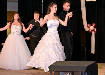 A végzős diákokat Durkó Tamás Gábor (11.A) és Kassai Zoltán (12.A) búcsúztatta, Fehérvári-Nagy Bianka (10.1.G) és Lázár Gabriella (12.A) verssel búcsúzott. Ezután elkezdődött az avatószalagok feltűzése, közben a végzős osztályokról gyermekkori és jelenkori fotókat láthattunk a kivetítőn. Ezután következtek az osztályok fellépései és az intézmény dolgozóinak produkciója. A 12.A szellemes bemutatkozása, valamint Bucsu Márk (10.1.G) és Nánássy Gábor (12.1.B) klasszikus kabaréjelenete után a kollégisták szalagos tánca, a 11.L country tánca, a 12.2.L lovas bemutatója és a kollégák meglepetés műsora következett. Az est megkoronázása a bécsi keringő volt. Igazgató úr négy éve díjazza a legkiemelkedőbb tanulmányi és közösségi munkát végző diákot, az értékes karórát idén Lajos Dániel (12.A) érdemelte ki. Dani a diákönkormányzat elnökeként, a kollégiumi közösségi élet szervezésében és tanulmányi munkájában is példát mutatott, soha egyetlen napot sem mulasztott, mióta iskolánkba jár. A rendezvény a Centrál Étteremben folytatódott, DJ Berry Pappa (Tar Zsolt) volt a házigazda. A „Szalagavató Partyn” megkoronázásra került az Iskola Lovagja és Dámája. A diákok – és a tanárok – szavazatai alapján Ertmann Máté (12.A) és Telenkó Zsófia (10.2.L) fejére kerültek a koronák. A választással hagyományt szeretnénk teremteni. Az eseményt szervezte és a címeket átadta Matuz Ádám a Szövetség a Mezőkovácsházai Járás Ifjúságáért diákszervezet társelnöke. Köszönetet mondunk a helyszín biztosításáért a József Attila Általános Művelődési Központnak, a Mezőhegyes Közbiztonságáért Polgárőr Egyesületnek, valamint támogatóinknak, és minden közreműködőnek!