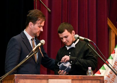 2019. március 1-jén ismét a József Attila Általános Művelődési Központ adott otthont a Kozma szalagavatójának. A diákok, valamint iskolánk valamennyi munkatársa lelkesen készült, hogy idén is színvonalas ünnepséget rendezhessünk. Diós Anna (9.1.L) nyitotta meg az eseményt, majd Tarkó Gábor igazgató úr köszöntötte a diákokat, szülőket és a meghívott vendégeket. Beszédében kitért az iskolát érintő változásokra, az ösztöndíj bevezetésére, az iskolában hamarosan megkezdődő beruházásokra. „Meg kell értenünk, hogy a közösség sikere a mi sikerünk is egyben, mint ahogy Mezőhegyes sikere az egész régió, sőt az egész ország sikere. Az itt folyamatban lévő beruházások által az állami mintagazdaság új virágkorának küszöbén állunk. A Cég nem csak a mezőhegyesieknek, hanem számos közeli településen élő családnak is megélhetést biztosít, ahogyan a múltban is. Örülünk neki, hogy egy nagyon rossz demográfiai környezetben a mezőhegyesi középiskola tanulólétszáma évről évre növekszik, hogy javulnak az oktatás körülményei, ösztöndíj támogatja az új diákokat, az átlagnál gyorsabban nő az itt dolgozók fizetése, Európa egyik legkorszerűbb gépparkja áll rendelkezésünkre a Tangazdaságban, még az idén el fog kezdődni az iskola épületegyüttesének átfogó fejlesztése, energetikai korszerűsítése, és egy új sportcsarnok megépítése.” A változásokra és a jövőképre sokan bizakodóan, mások irigykedve, kritikusan reagálnak. Intézményünk nevében igazgató úr kijelentette: „Elkötelezett, kemény munkával, rövid időn belül jelentős eredményeket fogunk felmutatni.” A közelmúltban ismét Erdélyből fogadtunk kollégákat, akik miután betekintést nyertek az itt folyó munkába, kiemelték, hogy az oktató munka mellett itt Mezőhegyesen különösen erős a nevelő munka. Kerezsi Miklós, a Ménesbirtok igazgatótanácsának tagja összegezte nagyon találóan, hogy miért is fontos ez. „Ahhoz, hogy jó szakembereket képezhessünk, legelőbb jó embereket kell nevelnünk.” Az igazgató kiemelte, hogy az iskola összes dolgozója és tanulója egyformán részesei az oktató-nevelő folyamatoknak, majd reményélt fejezte ki, hogy nem csak tárgyi tudást és gyakorlati tapasztalatokat visznek magukkal a végzősök. „Kívánom, hogy a vizsgákon és azt követően is váljon hasznotokra mindaz a tudás, amit átadni igyekeztünk, és ennél is jobban szeretném, ha magatokkal vinnétek azokat az értékeket, normákat, azt az életszemléletet, életfilozófiát, amit közvetíteni igyekeztünk felétek az elmúlt években!”